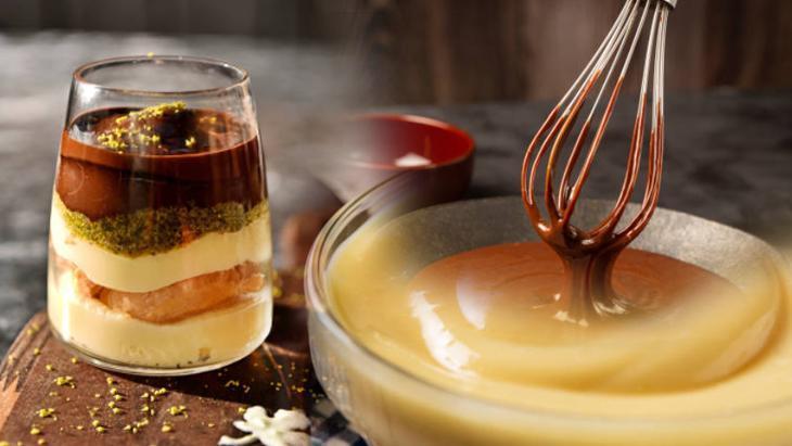 2 renkli muhallebi böyle yapılıyormuş! Pastası için keke 15 dakika verin: Sürekli karıştırın