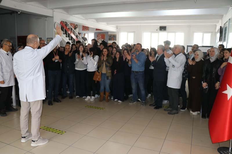 Öğrencileriyle ve meslektaşlarıyla hatıra fotoğrafı çektiren Kök, kucaklaşarak onlara veda etti.
