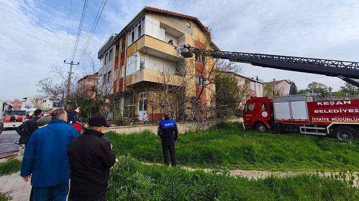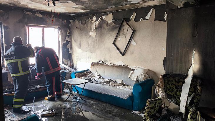 İhbar üzerine adrese polis, itfaiye, AFAD, TREDAŞ, GAZDAŞ ve sağlık ekipleri sevk edildi. Yangın kısa sürede büyürken, binanın giriş katında oturan bir kadın da çevredekilerin yardımıyla dışarıya çıkarıldı. Polis, çevrede güvenlik önlemi alırken, itfaiye ekipleri yaklaşık 1 saatlik müdahaleyle yangını söndürdü. Yangın sonucu evdeki eşyalar kullanılamaz hale geldi.