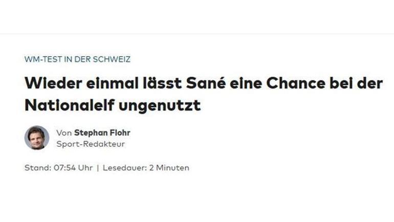 Welt'te yer alan "Sané, milli takımda bir kez daha fırsatı heba etti" başlıklı haberde yer alan ifadeler şöyle;