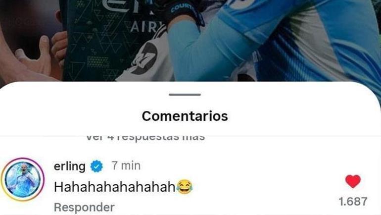 Norveçli golcü Erling Haaland bu paylaşıma 'Hahahahahah' yazarak sonuna gülme emojisi ile yanıt verdi.
