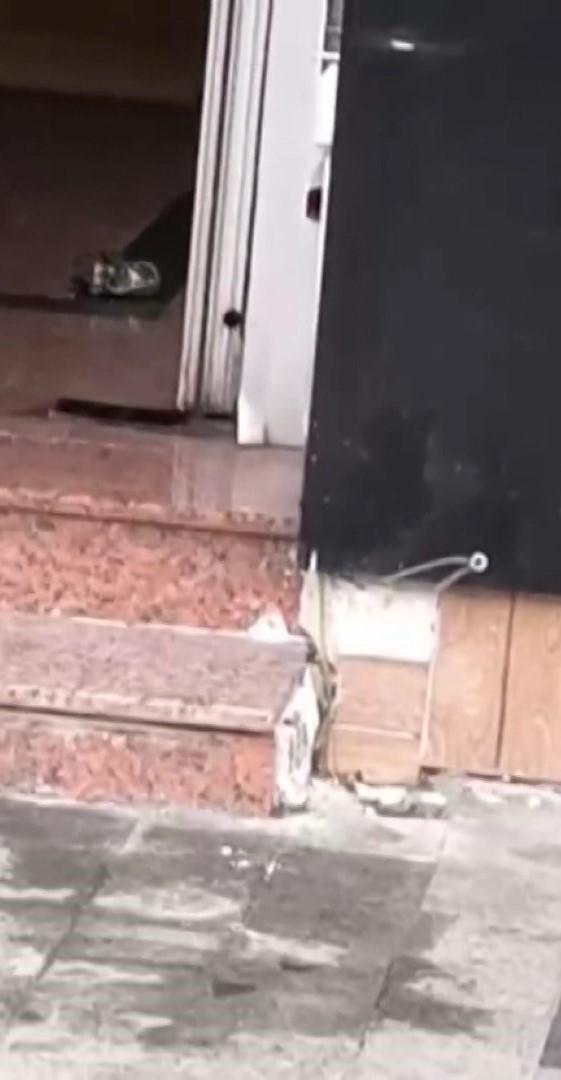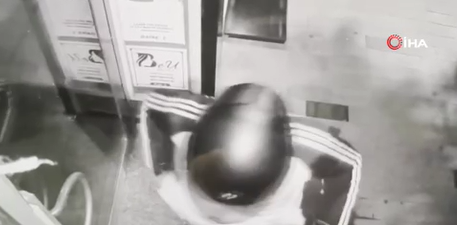 Güvenlik kamerasınca kaydedilen görüntülerde kasklı şüphelinin bombayı bantla kapıya yapıştırdığı görülüyor. Yanındaki diğer şüphelinin o anları cep telefonuyla kaydetmesi görüntülerde yer alıyor.