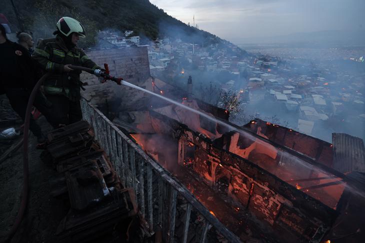 Bursa'nın Osmangazi ilçesi Alacahırka Mahallesi'nde 2 katlı evde başlayıp bitişiğindeki binaya sıçrayan yangın ekiplerce söndürüldü.