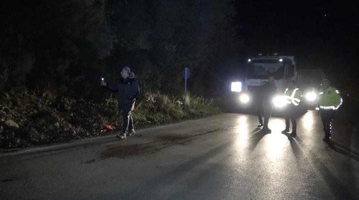 Yoldan geçen bir vatandaşın 112 Acil Çağrı Merkezi’ne ihbarı üzerine bölgeye, Bursa İtfaiye Daire Başkanlığı’na bağlı Mudanya İtfaiye Amirliği ekipleri, trafik polisleri, Karayolları Genel Müdürlüğü ve Mudanya Belediyesi ekipleri sevk edildi. Olay yerinde yol, güvenlik gerekçesiyle iki yönlü olarak trafiğe kapatıldı.