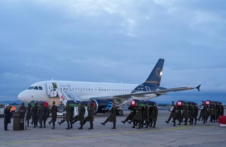 Ankara’da havalandıktan kısa süre sonra düşen uçaktaki Libya Genelkurmay Başkanı Orgeneral Muhammed Ali Ahmed El Haddad, Libya Kara Kuvvetleri Komutanı Korgeneral Futuri Gribel, Askeri Fabrikalar Genel Müdürü Tuğgeneral Mahmut Cuma El Giteviy, Genelkurmay Başkanı Danışmanı Muhammed El Assavi Diyab ve bakanlık fotoğrafçısı Muhammed Ömer Ahmed Mahcub’un naaşları Adli Tıp Kurumu’ndaki işlemlerin ardından Mürted Hava Meydan Komutanlığı’ndaki tören alanına getirildi.