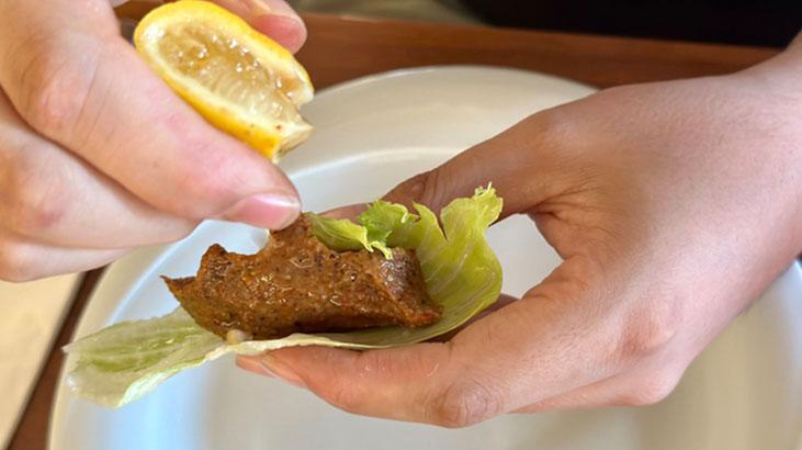 Son aşamada limon suyu nar ekşisi ve zeytinyağı eklenir. Karışım tekrar yoğrulur ve son kıvamına ulaşması sağlanır. Elinizi hafifçe yağlayarak çiğ köfte şekli verin. Marulla ve lavaşla servis edildiğinde lezzet zirveye çıkar.