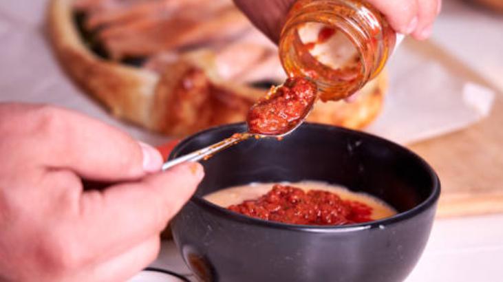Son karıştırmayı kaşıkla yapabilirsiniz. Bu işlemin ardından kızarmış eklmek ya da dilediğiniz hamur işiyle muhammaranızın tadına bakabilirsiniz. Üzerine zeytinyağı ve biraz taze kekik ekledikten sonra sunuma hazır hale gelecek. Afiyet olsun!