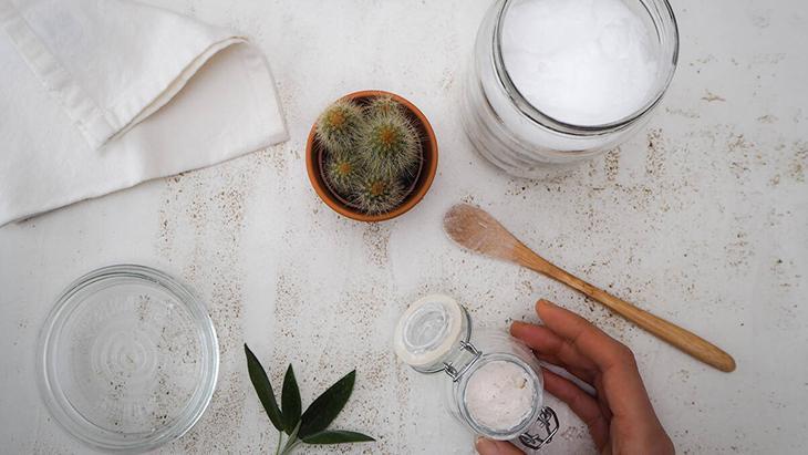Limon suyu ile karıştırıldığında güçlü bir temizleyiciye dönüşen Hindistan cevizi yağı sabun ve kireç kalıntılarını çözüyor aynı zamanda camlara parlaklık kazandırıyor.