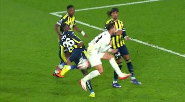 Bahattin Duran: Kare kare incelediğimizde görüyoruz ki topla oynamış, top beyazlı oyuncunun göğüs bölgesine çarpmış. Faul de yok gördüğüm kadarıyla. Çok eleştirilecek bir pozisyon değil, kart vermemesi doğru.