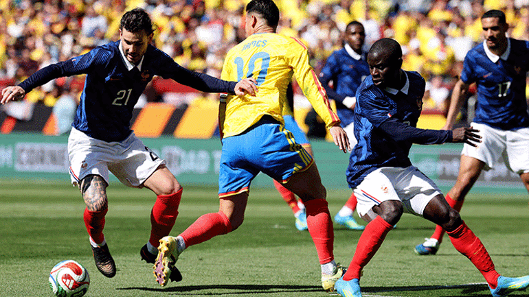 Mücadelede Fenerbahçe'nin tecrübeli yıldızı N'Golo Kante ile Galatasaray'ın yıldız stoperi Davinson Sanchez 90 dakika sahada kaldılar. 2026 Dünya Kupası'nı garantileyen iki ülkenin karşı karşıya geldiği maçta Fransa'nın gollerini Desire Doue (2) ve Marcus Thuram, Kolombiya'nın tek golünü ise Jaminton Campaz attı.