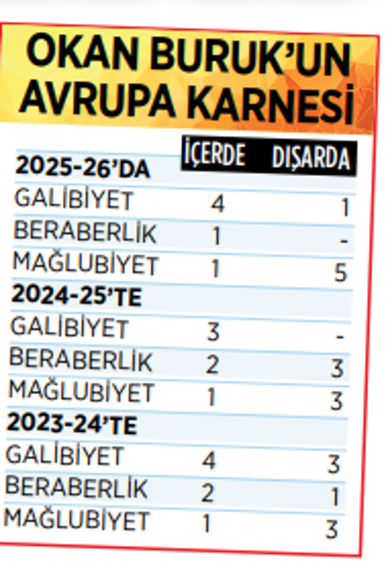 Yaşanan ‘deplasman’ sıkıntısı, geçen sezonun devamı niteliğindeydi. Sarı-kırmızılılar 2024-25 sezonunda Avrupa kulvarını, dış sahada hiç maç kazanamadan tamamladı. Şampiyonlar Ligi ve Avrupa Ligi’nde sözü geçen sezonda rakip sahada 6 maça çıkan Cim-Bom 3 yenilgi, 3 beraberlik elde etti. Buna karşın seyircisinin önünde 3 galibiyet, 2 beraberlik, 1 yenilgi aldı. 2023- 24’te deplasmandaki müsabaka sayısı 7, bunlardaki sonuç 3 yenilgi, 3 galibiyet, 1 beraberlikti
