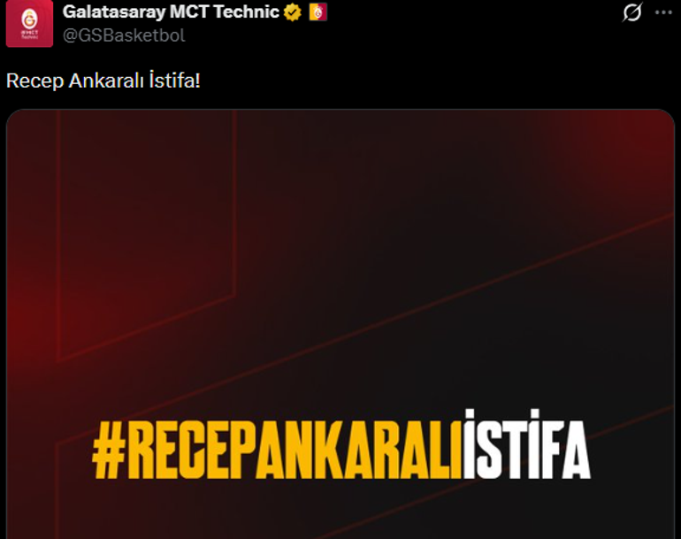Mücadele devam ederken sarı-kırmızılı ekip sosyal medya hesabından hakem kararlarına tepki gösterdi. Galatasaray Basketbol MHK Başkanı Recep Ankaralı'yı istifaya davet etti.