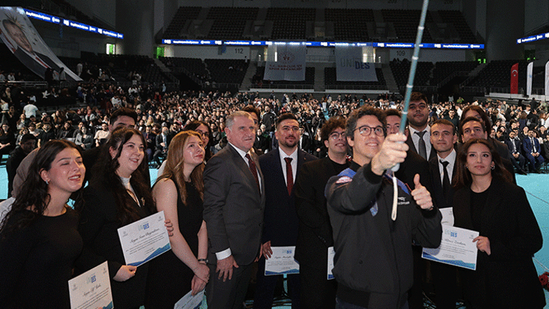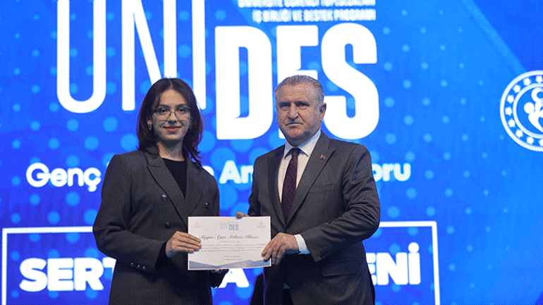 Bakan Bak, konuşmasının ardından ÜNİDES Bilgi Yarışması'nda dereceye girenlere ödüllerini, öğrenci topluluğu temsilcilerine ise sertifikalarını takdim etti.