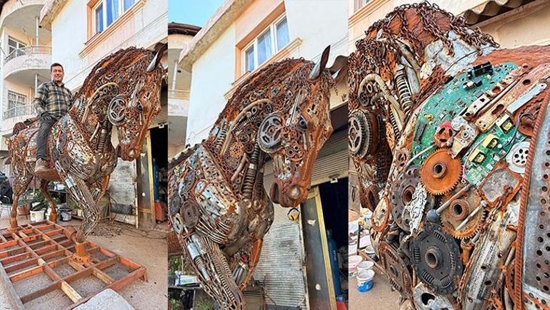Hatay’da atıklardan dev heykel! Büyük İskender’in efsanevi atı Bukefalos yeniden doğdu