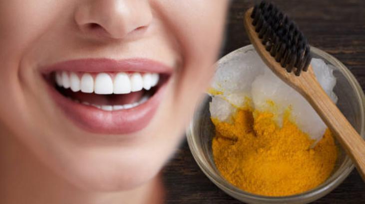 Pek çok kişi leke riskini azaltmak için Hindistan cevizi yağı ve zerdeçalı karıştırmayı seçiyor. Hindistan cevizi yağı antibakteriyel özelliklere sahiptir ve zerdeçalın güçlü pigmentini seyreltir. İşte lekeleri çıkarıp, diş rengini beyazlatmak için basit bir yöntem: