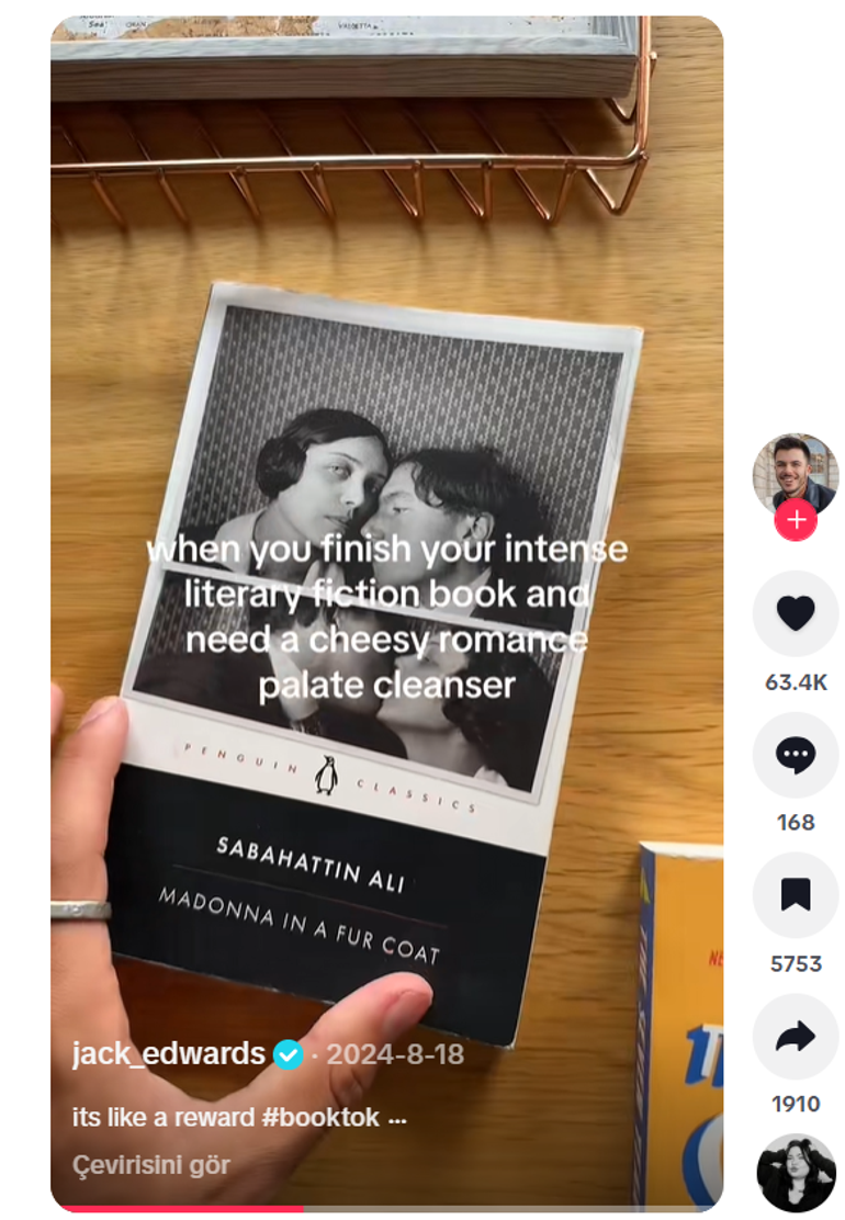 Romanın yeniden gündeme gelmesinde TikTok’un kayda değer bir payı bulunuyor. Öyle ki, İngiltere’nin en tanınan kitap içerik üreticilerinden Jack Edwards, yayınladığı videoda Kürk Mantolu Madonna'yı “ruhun penceresi” olarak tanımladı. Edwards’ın videoları milyonlarca kişiye ulaştı ve elbette kitabın satışlarını da doğrudan etkiledi.