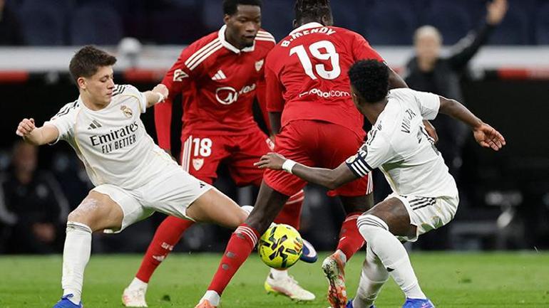 İspanya LaLiga’da Real Madrid, 17. hafta mücadelesinde Sevilla’yı konuk etti. Xabi Alonso’nun ekibi sahadan 2-0’lık galibiyetle ayrılıp 2025’i 3 puanla bitirdi.