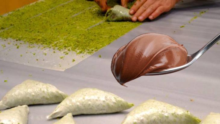 50 gram tereyağı, yarım çay bardağı sıvı yağ, çikolatalı fındık kreması, 200 gram çekilmiş fıstık içi, 6 adet baklavalık yufka bu leziz ve pratik tatlıyı yapmak için gereken malzemelerdir.
