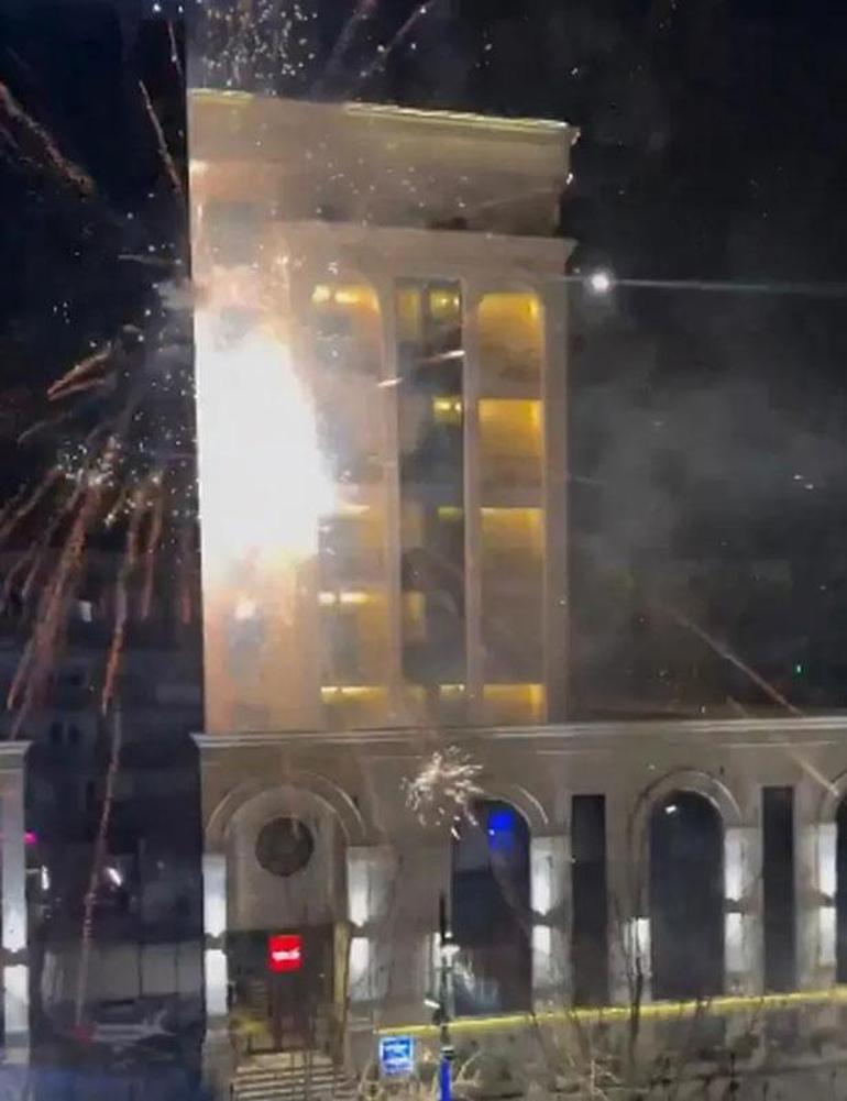 Kosovalı bir grup, gece yarısı otelin önüne gelerek havai fişek attı. İlk olayda yaklaşık bir dakika boyunca havai fişek kullanılırken, kısa süre sonra farklı bir noktadan yeniden otelin hedef alındığı belirtildi.