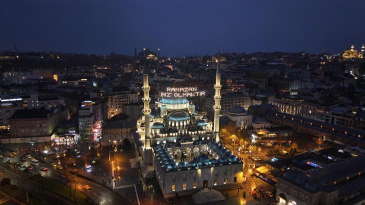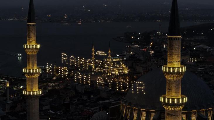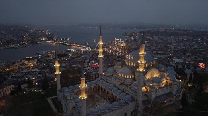 Sahur hazırlıklarına saatler kala dron ile kaydedilen görüntülerde, minareler arasına asılan mahyaların şehrin tarihi dokusuyla bütünleştiği görüldü. Süleymaniye Camii’nde "Ramazan Kur’an Ayıdır" yazılı mahya semaları süslerken, Yeni Camii’nde de minareler arasına 'Ramazan biz olmaktır' yazıldı. Ramazan ayı boyunca İstanbul'daki camilerde beş farklı mahya yazısı yer alacak.