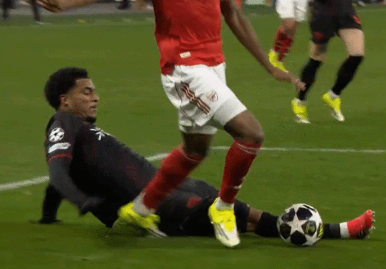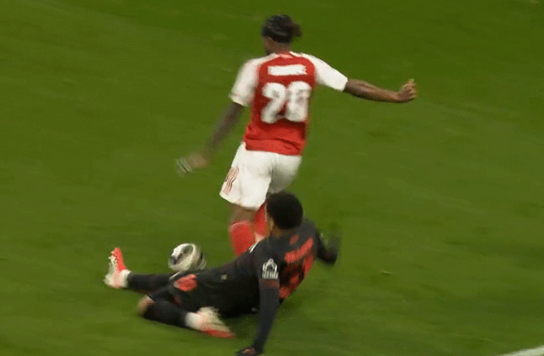 Karşılaşmanın son bölümünde Arsenal atağında Noni Madueke sağ çaprazdan ceza sahasına girdi. Madueke, Alejandro Grimaldo'nun müdahalesi sonrası yerde kalırken Halil Umut Meler penaltı kararı verdi.
