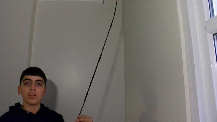Dairede yaşayan Emircan Alev, "’Biz burada oturuyorduk yemeğimizi yedik, çocuklar odaya gitti. Annemle sofrayı topladığımız sırada birden tavandan sesler gelmeye başladı.