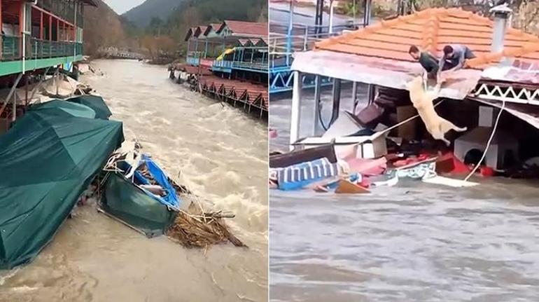 Debisi ciddi ölçüde yükselen Dimçayı'ndaki piknik işletmelerinden bazıları yerle bir oldu. Aynı bölgede bir köpek işletme sahipleri tarafından son anda kurtarıldı. İşletmenin çatısından sarkan 2 kişi, akıntıya kapılmak üzere olan köpeği yukarı çekebilmek için yoğun çaba sarf etti. Uzun uğraşlar sonucu köpek akıntıya kapılmadan kurtarılabildi.