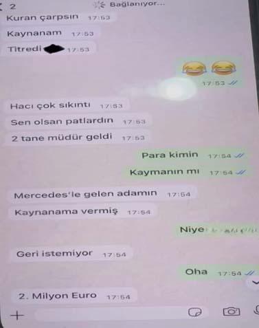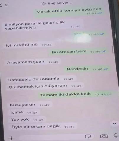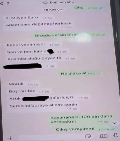 Öte yandan tutuklanan şüphelilerden Ömer Karaca'nın Whatsap'taki mesajları ortaya çıktı. Karaca mesajında, "100 bin euro daha gelebilir, toplamda 200 bin euro, '5 milyon para ile galericilik yapabilir miyiz' yazdığı görüldü.
