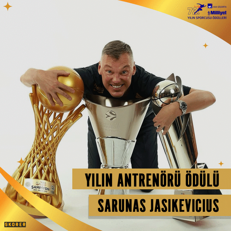 Yılın antrenörü ödülü, Fenerbahçe Beko'yu EuroLeague şampiyonluğuna taşıyan başantrenör Sarunas Jasikevicius'un oldu. Ödülü TBF Başkanı Hidayet Türkoğlu takdim etti.