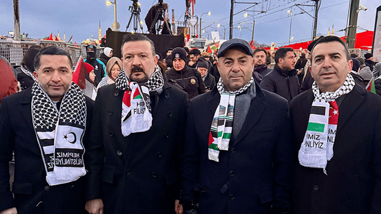 Taha Akgül de çok önemli bir eylemde bir arada olduklarını belirterek, "Tüm Türkiye, Filistin için bir araya geliyor. Spor camiası da burada. Biz de Türkiye Güreş Federasyonu olarak bu etkinliğe destek vermek istedik. Filistin halkını unutmamak gerekiyor. Sadece dünyanın sınavı değil bu, aynı zamanda ahiretin de sınavı. Müslümanlar olarak bizim bir borcumuz var. O görüntüleri izlediğimizde içimiz parçalanıyor. Şu anda orada sel felaketi de var. Elimizden hiçbir şey gelmiyorsa da en azından protesto etmemiz lazım." şeklinde konuştu.