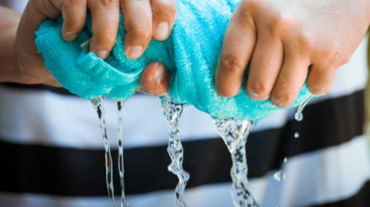 Kumaş parçalarını kestikten sonra soğuk suyla ıslatın ve tek bir damla su bile çıkmayana kadar iyice sıkın. Bir kaba aloe vera jelini ve koyu kıvamlı jel akışkan bir çözelti haline gelene kadar azar azar su ekleyin. Cerrahi alkolü ekleyin, karıştırın ve ardından kumaş parçalarını ekleyin. Kumaşları iyice sıkın ve kutuya katlayın, katlanmış plastik poşetle örtün ve kapağını kapatın. Plastik poşet, eve götürüp yıkayacağınız kirli kumaşları koymak içindir. Bunlar en az altı ay boyunca nemli ve taze kalacaktır.
