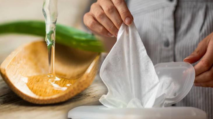 20 adet ince pamuklu kumaş parçası, 20 ml aloe vera jeli (hafif temizleyici ve cilt nemlendirici), 120 ml su, 30 ml alkol (antibakteriyel temizleyici), 2-3 damla limon esansiyel yağı (koku için isteğe bağlı), Hava geçirmez kapaklı küçük plastik kutu, Küçük plastik torba, Küçük çırpıcı, İki kase, biri soğuk su dolu olmalı, diğeri malzemeleri karıştırmak için gerekiyor.