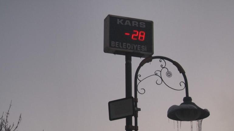 Öte yandan Kars’ta hava sıcaklığı gece sıfırın altında 32 derece ölçülürken, sabah erken saatlerde hava sıcaklığı termometrelerde sıfırın altında 28 dereceyi gösterdi. Meteoroloji 16. Bölge Müdürlüğü’nce yapılan uyarıda soğuk havanın etkisini sürdüreceğine dikkat çekildi.