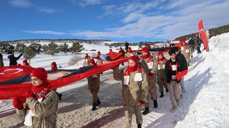 Kent merkeziyle Sarıkamış ilçesinden otobüslerle zirveye ulaşan katılımcılar, Türk bayraklarıyla yürüyerek toplanma alanına geldi. Vatandaşlar, Kızılçubuk bölgesinde şehitler anısına yapılan kardan heykellerin önünde fotoğraf çektirdi.