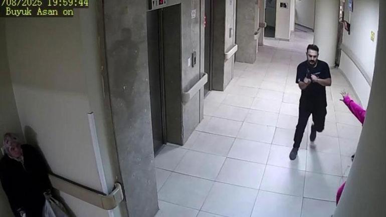 Şüphelinin silahıyla hastane koridorlarında boşanma aşamasındaki eşine yaşattığı dehşet anlarının güvenlik kamerası görüntüleri ortaya çıktı.