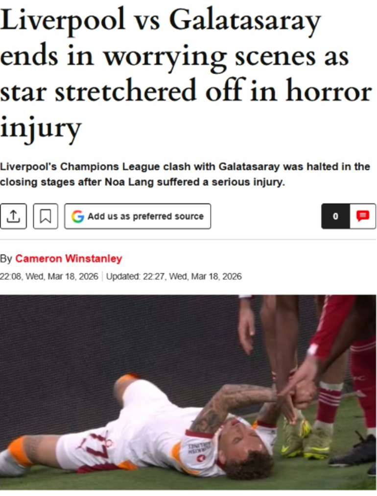 DAILY EXPRESS (İNGİLTERE): Liverpool'un Galatasaray karşısında Şampiyonlar Ligi'nde elde ettiği ezici zafer, maçın son bölümlerinde yaşanan korkunç bir sakatlık nedeniyle gölgelendi. Karşılaşma, Noa Lang'ın korkunç bir sakatlık sonucu sedyeyle sahadan taşınmasıyla, endişe verici görüntüler eşliğinde sona erdi. Futbolcunun parmağındaki büyük kesikten kan fışkırıyordu. Galatasaray, rövanşa bir gol avantajla gelmişti ancak birçok sakatlık yaşadı ve sonunda mağlup oldu.