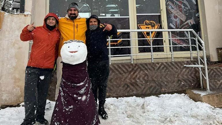 Gaziantep’te kar yağışı hayatı olumsuz etkiledi, esnaf ise durumu fırsata çevirdi. Müşteri olmayınca dükkanların önünde bu kez kardan adamlar oturdu. Bir berber tıraş pratiğini kardan adamla yaparken, kuyumcu kardan geline altın taktı.