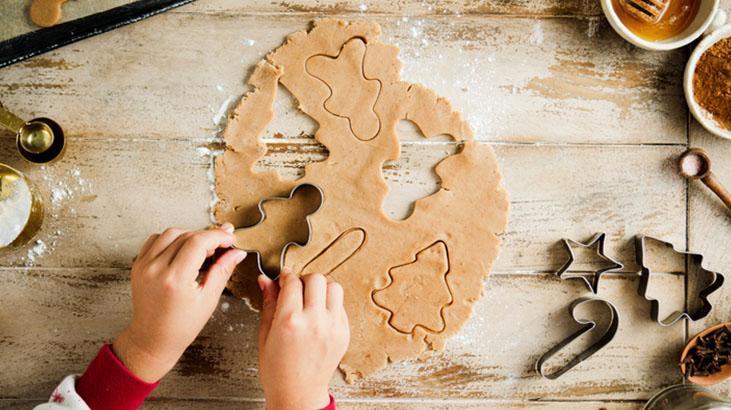 Hamuru buzdolabında yaklaşık iki saat dinlendirin. Zamanınız kısıtlıysa dondurucuda yarım saat bekletmeniz de yeterli olur. İyice soğuması şekil verirken bozulmasını önler. Dinlenen hamuru dolaptan çıkarın ve istediğiniz kalıplarla kesin. Detaylı kalıplar kullanıyorsanız kalıbı hafifçe nişastaya batırabilirsiniz. Bu sayede hamur kalıptan daha kolay ayrılır ve desenler net çıkar.