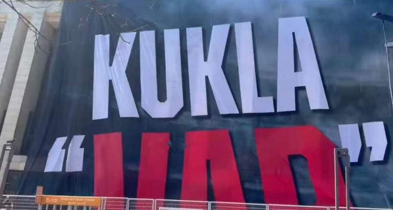 Pankartta 'Kukla VAR' ifadelerinin yer aldığı görüntülendi.