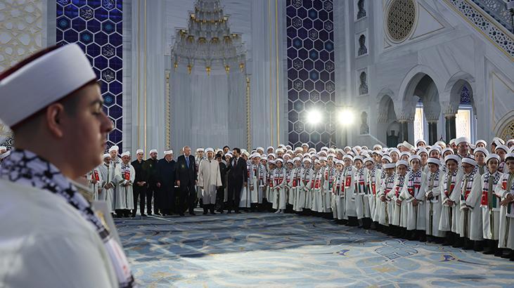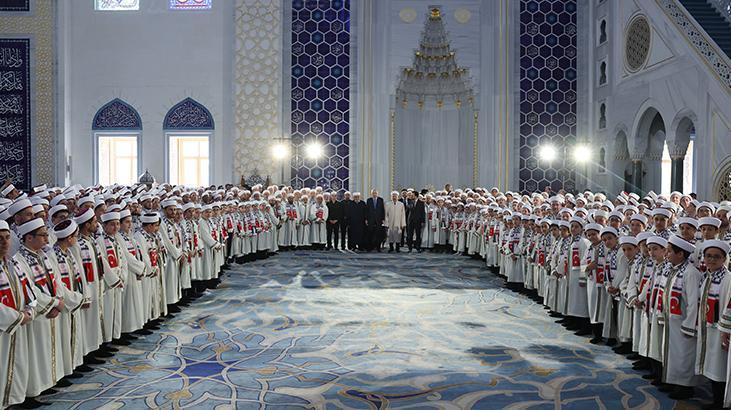Cumhurbaşkanı Erdoğan, Çamlıca Camisi'nde, imam hatip okulları ile Kur'an kurslarında hafızlık eğitimlerini tamamlayan öğrencilerin tekbirleriyle karşılandı.