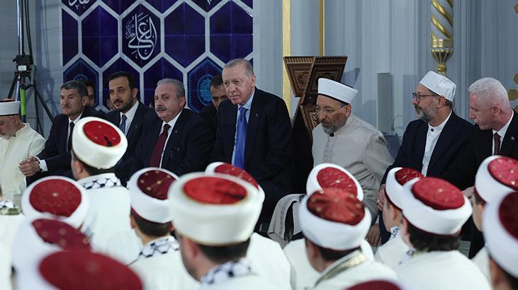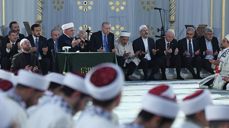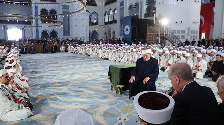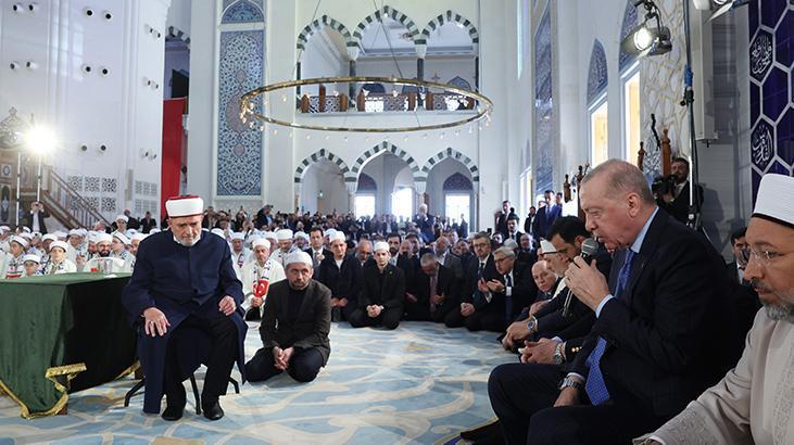 Erdoğan, burada Aşr-ı Şerif okurken, reisülkurra Mustafa Demirkan törende dua etti.