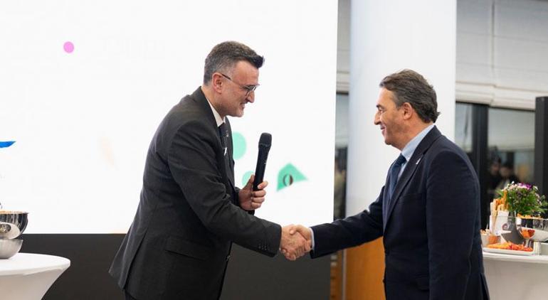 ODTÜ Rektörü Prof. Dr. Ahmet Yozgatlıgil, ODTÜ Sanat’a katkılarından dolayı İş Bankası Genel Müdür Yardımcısı Suat Sözen’e bilim ağacı plaketi takdim etti.