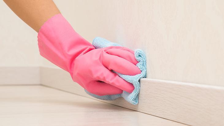 1 bardak ılık su ve 1–2 yemek kaşığı beyaz sirke. Bu karışımı yumuşak bir bez ya da süngerle süpürgeliklere uyguladığınızda farkı anında görmeniz mümkün.