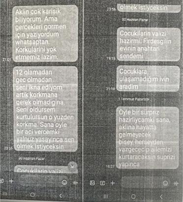Savcılığa dosyayı almaya gittiğinde Murat Keklik'in mesajını dosyada gördüğünü ifade eden Yıldız, "Katil bana 'Sana öyle bir sürpriz yapacağım ki ölmeyi sen isteyeceksin, yalnız kaldığında' mesajını göndermiş. O bana acı çektirmek istiyordu ve nereden acı çektireceğini de çok iyi biliyordu. Biliyordu benim çocuklarıma ne kadar düşkün olduğumu. Ben onun o kadar cani olabileceğini düşünmedim. Babaları çocuklarımın katili oldu" dedi.4